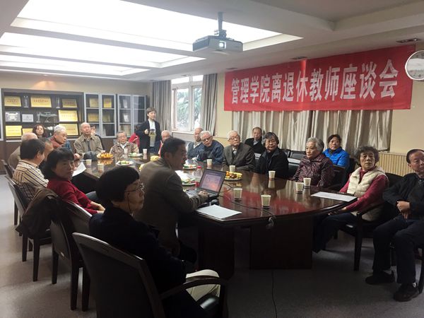 退休教师首先对学院取得的成绩给予了充分肯定,并就当前学院现状以及将来如何在管理学科中脱颖而出提出了建议。老师们深情满怀,从学院始创、初具规模谈到辉煌发展,学院的发展至今仍是他们心中最大的牵挂。在学院历史文化挖掘,激励年轻人发展;在如何引进优秀人才、培育人才;学院如何特色发展,形成学科优势;如何加强学院与企事业单位的沟通与合作等方面纷纷谈了自己的想法和建议。在座所有人都被学院前辈们为学院发展献计献策的精神感动着,激励着。