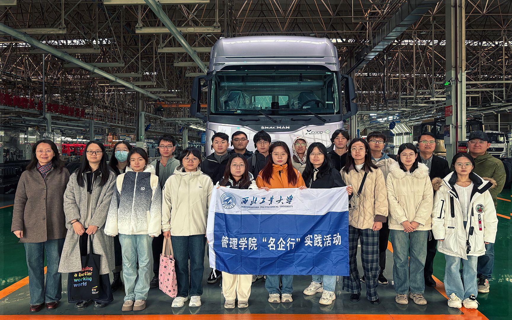 20余名师生赴陕西汽车控股集团有限公司开展访企拓岗和实践交流活动,实地探访中国高端装备制造的创新引擎,解码科技研发背后的硬核力量。陕汽控股组织人事部副部长梁军、招聘经理杨汝博热情接待了到访师生。