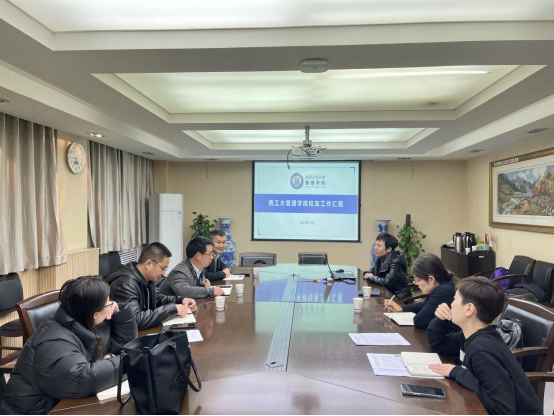 乔彩燕首先代表学院对杨铭一行表示欢迎。随后从组织架构、校友活动开展情况、筹资捐赠等方面介绍了学院校友分会的工作,并且交流了学院筹备校友分会建设的工作思路。乔彩燕表示感谢校友总会对学院分会的关心和支持,希望在今后的工作中可以更进一步加强双方的沟通交流,推动学院校友工作有序开展,充分发挥学院校友分会在学校建设发展中的重要作用。