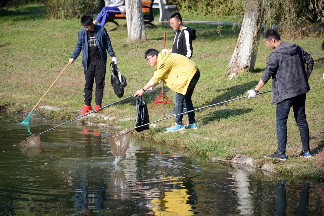 和物业服务中心提供的劳动工具,对启真湖和启翔湖湖面及岸边的杂物进行了全面清理。在此期间,物业服务中心杨斐老师向部分志愿者介绍了我校学生自主研发的“清洁环保无人船”的运行机理及安装拆卸方法,并指导部分志愿者亲身体验。