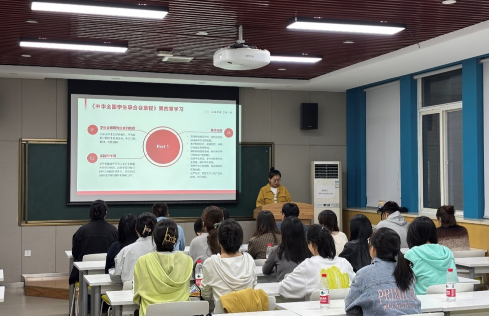 研究生会文体协会成员李美玲带领全体成员学习了《中华全国学生联合会章程》及《共青团指导学生联合会工作的若干规定(试行)》的主要内容,围绕研究生会的性质、宗旨和作用、基本任务等展开充分学习。明确研究生会以全心全意服务同学为宗旨,起到学校党政与同学之间的桥梁作用,在党组织领导和团组织指导下开展工作,同时强调要以习近平新时代中国特色社会主义思想为指导,服务同学,强化政治意识和责任感。