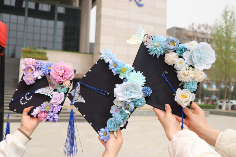 经过几个小时的精心制作,每一顶毕业帽都仿佛在讲述着毕业生们专属的故事—图书馆挑灯夜战的日夜,实验室中专注钻研的时光,以及与同学们共同奋斗、欢笑的温馨瞬间。这些充满感情与创意的作品不仅记录了校园生活的点滴美好,更象征着毕业生们对未来无限可能的期待与追求。