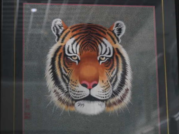 实践队员在负责人的介绍下,了解了与先前的虎头鞋等老百姓喜闻乐见的集美好寓意与实用性的家常工艺品不同的刺绣画。与普通刺绣相比,西秦刺绣所用原料均为丝线,不易褪色,更具收藏价值。由于其独特的复杂工艺,在一幅刺绣画中,针眼和线头都很难被发现,这使西秦刺绣画表现的图案更为立体,更富光泽和活力。