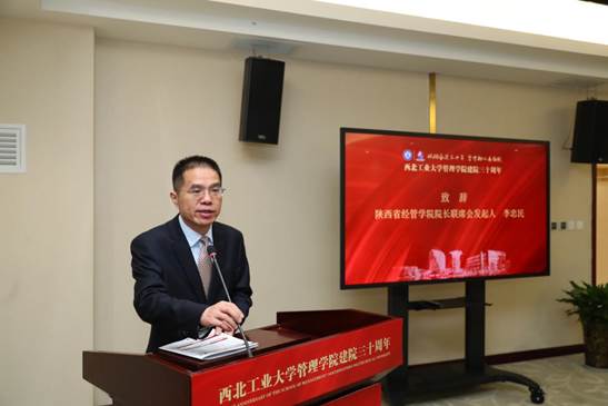 建院三十周年表示热烈的庆贺,随后介绍了陕西省经管学院院长联席会的基本情况,提议联席会各成员抱团取暖,建立智库,把经管写在祖国的大地上。